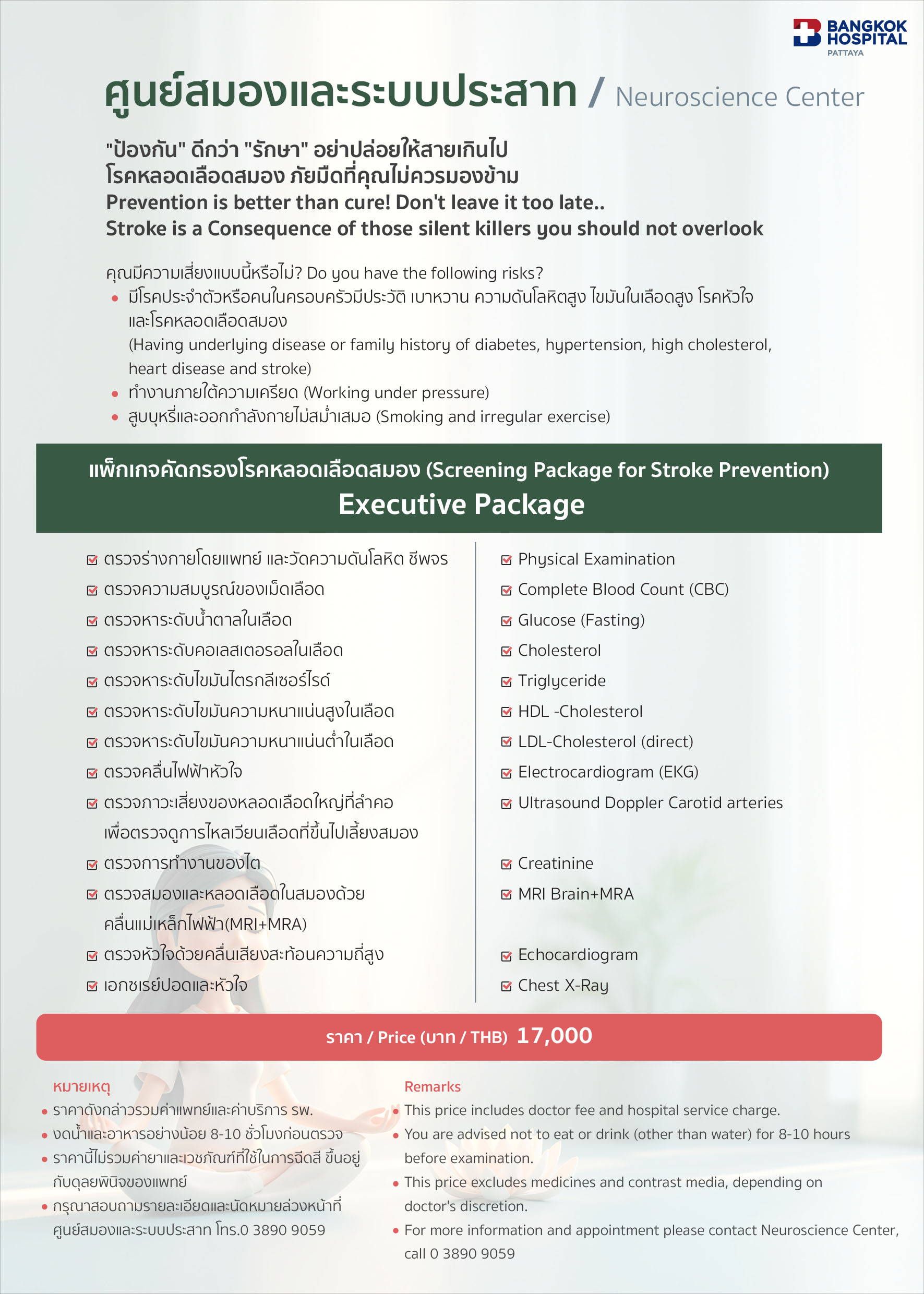 (โรงพยาบาลกรุงเทพพัทยา) Stroke Screening Package