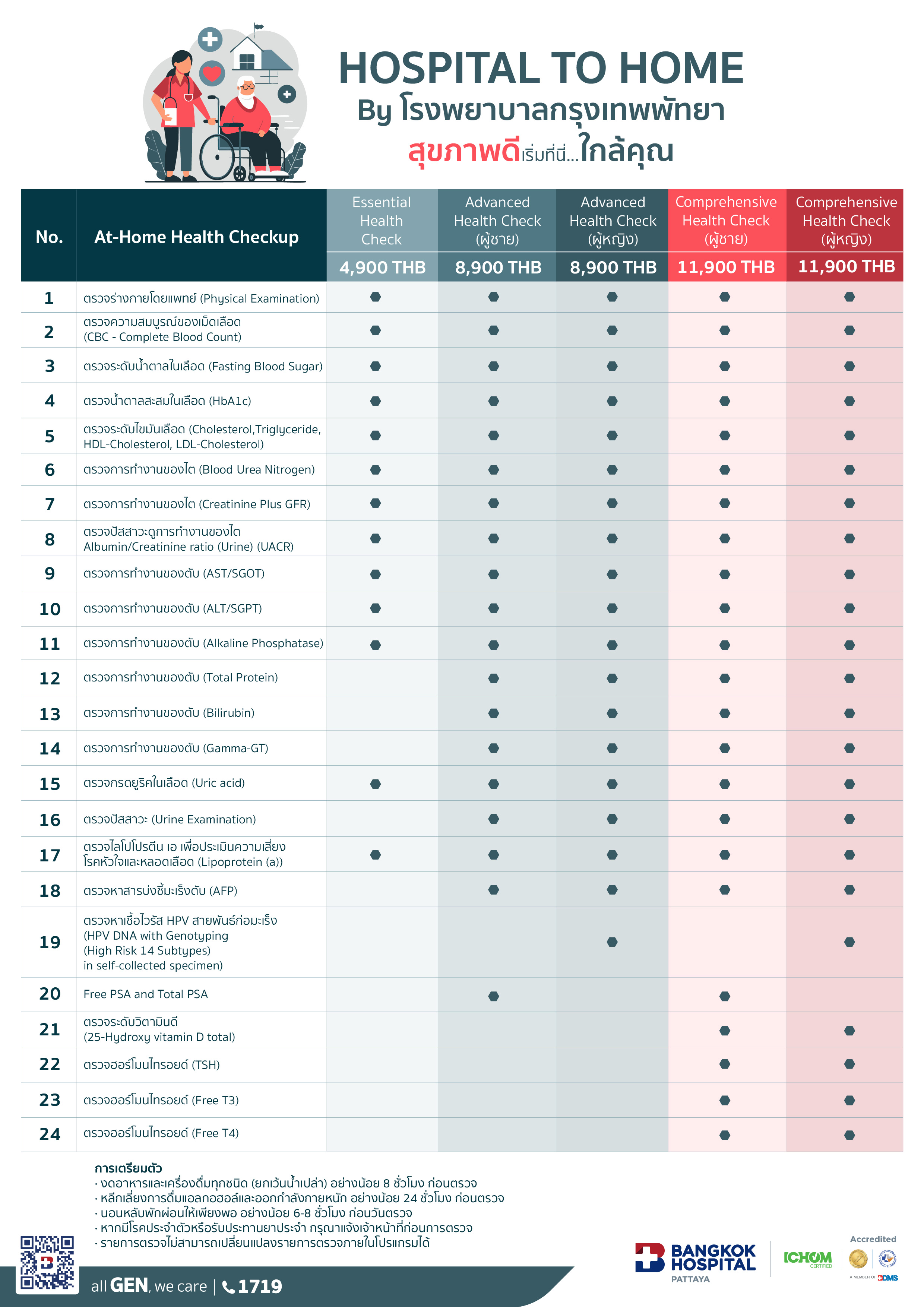 • Services are available at Bangkok Hospital Pattaya only