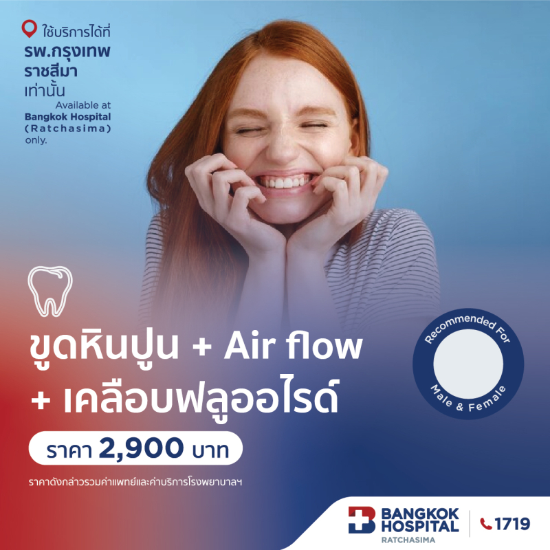 10. สามารถรับบริการที่ แผนกทันตกรรม ชั้น 4 โรงพยาบาลกรุงเทพราชสีมา ทุกวัน 9.00 – 17.00 น.