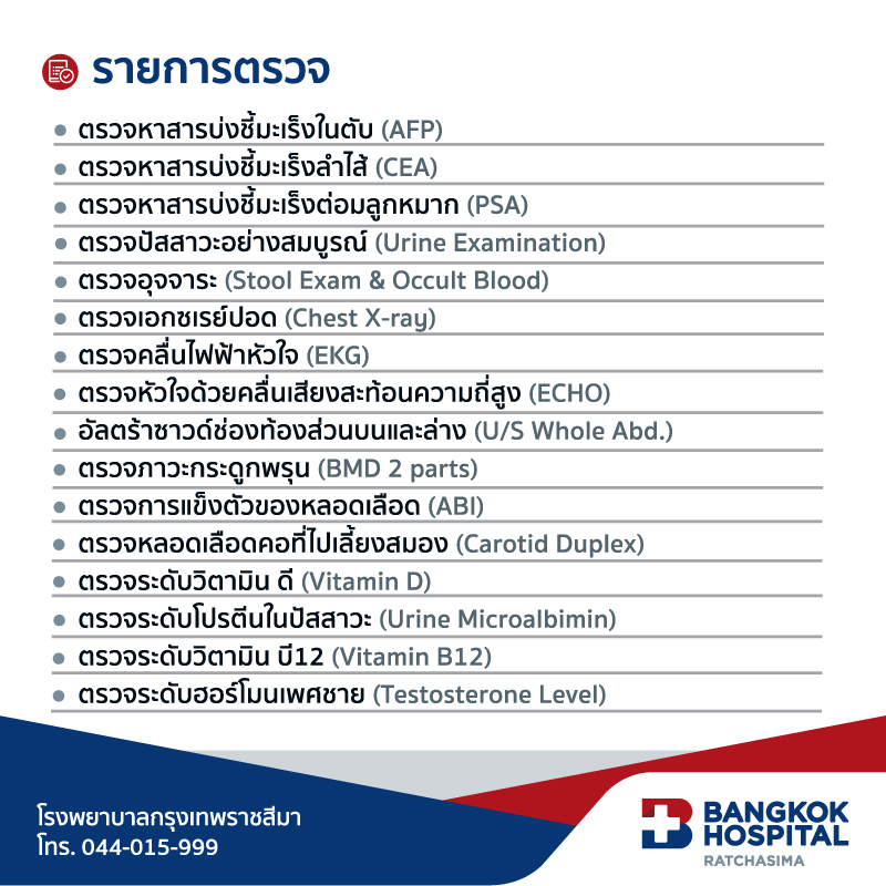 (กรุงเทพราชสีมา) ชุดตรวจสุขภาพ Longevity Male (60+)