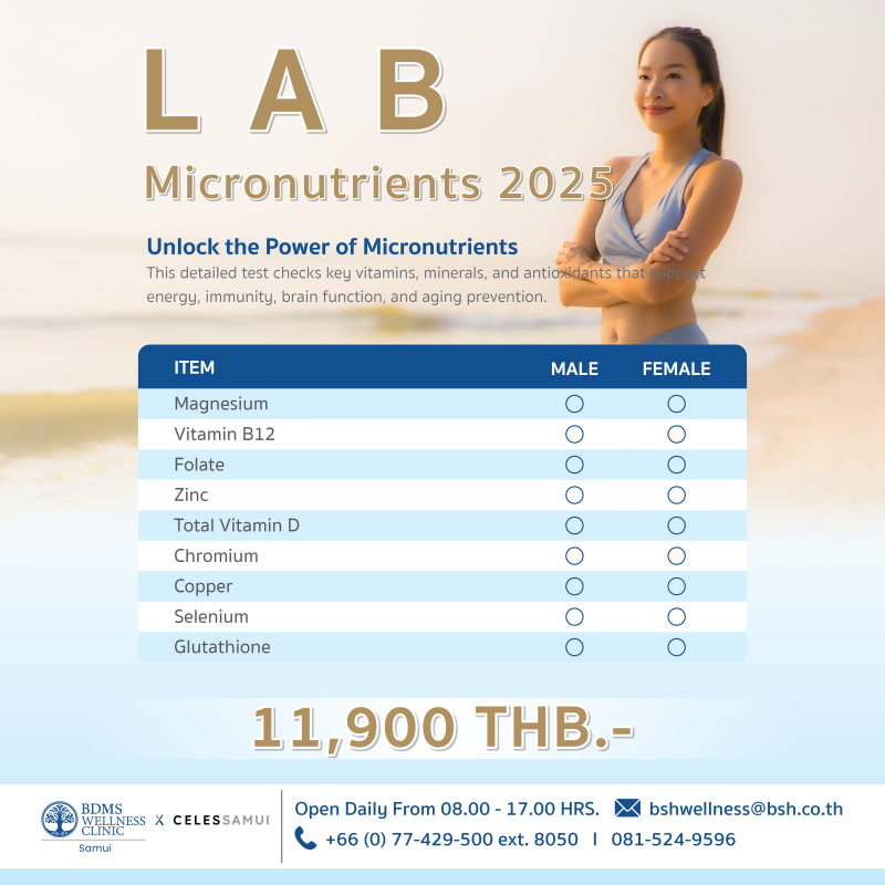 สอบถามรายละเอียดเพิ่มเติมหรือนัดหมายเพื่อรับบริการได้ที่ BDMS Wellness Clinic Celes Samui  โทร (0) 77-429-500 ต่อ 8050  หรือโทร   081-524-9596