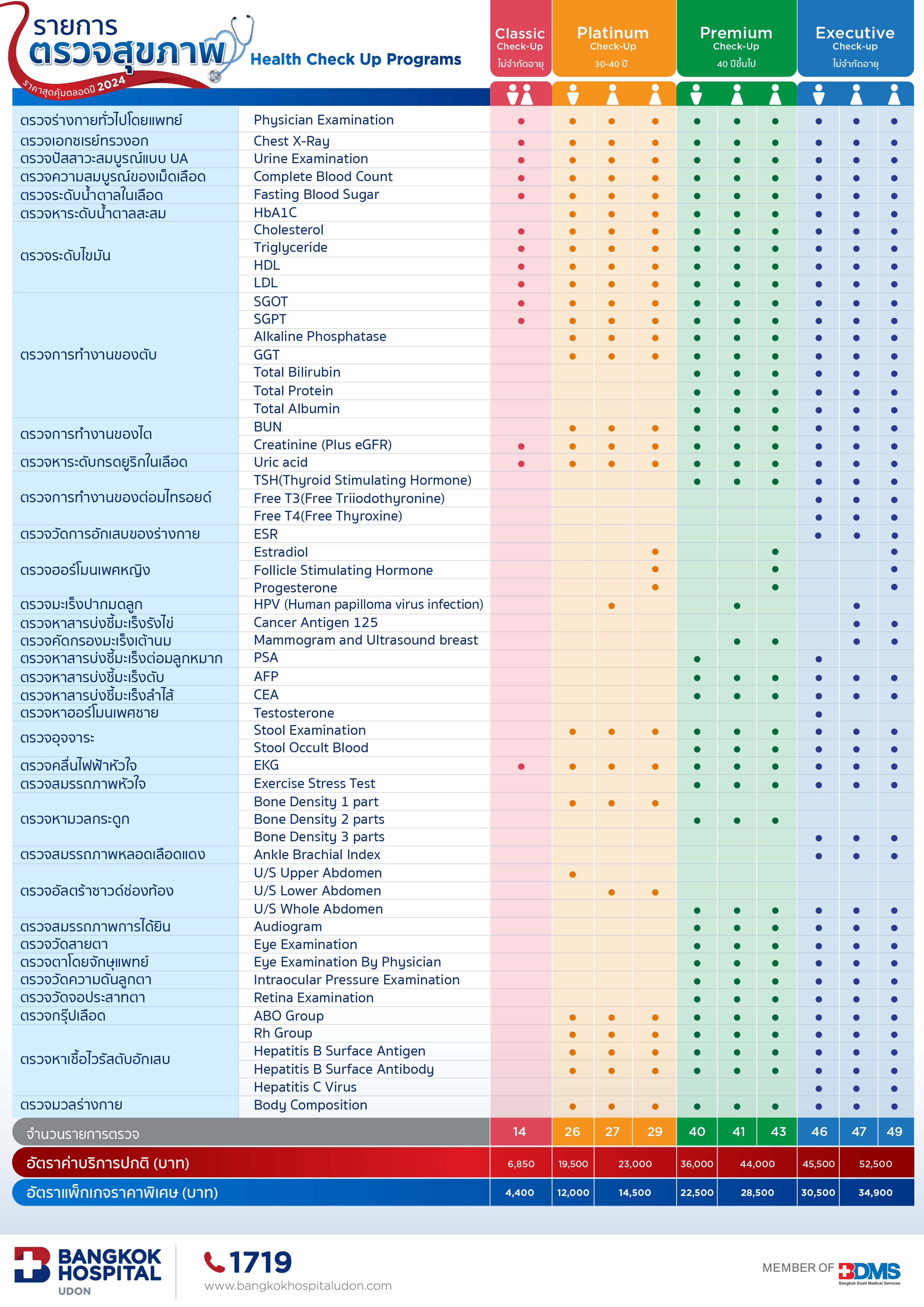 - ตรวจฮอร์โมนเพศหญิง (Estradiol/Folicle Stimulating Hormone/Progesterone) โปรแกรมตรวจ 29 รายการ