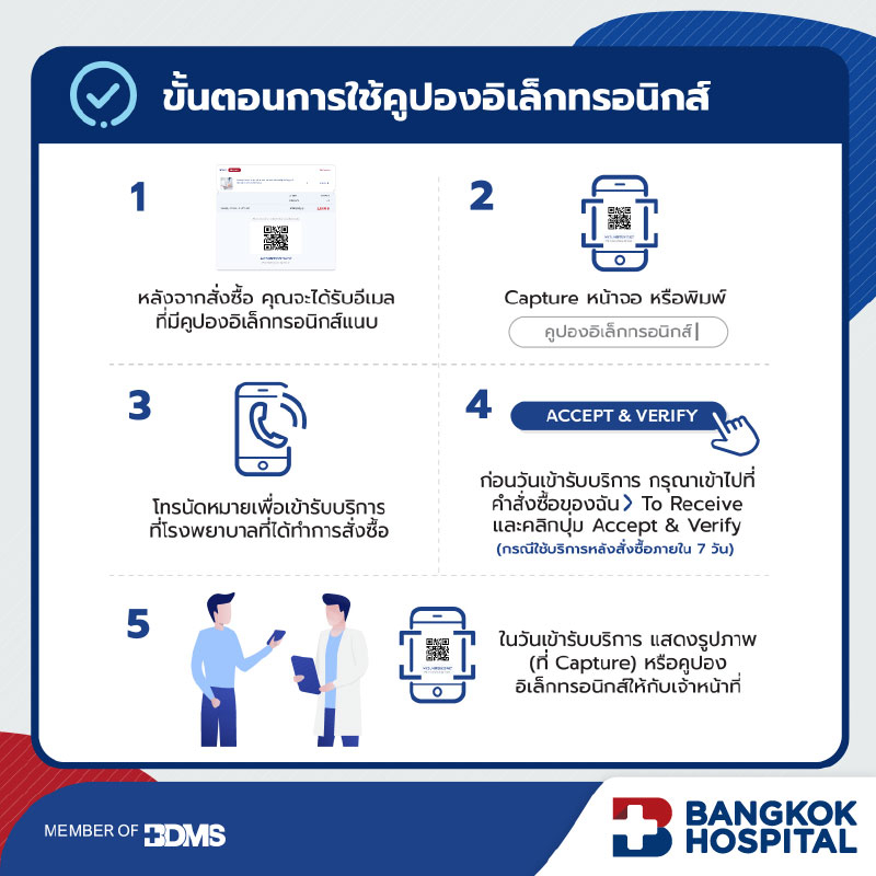 4.    แสดงคูปองอิเล็กทรอนิกส์ ให้กับเจ้าหน้าที่ในวันที่รับบริการ