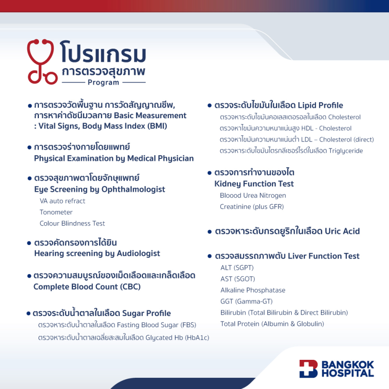 8. ชุดตรวจสุขภาพ ไม่รวม ค่ารักษาหรือค่ายาเพิ่มเติมในกรณีที่แพทย์สั่ง