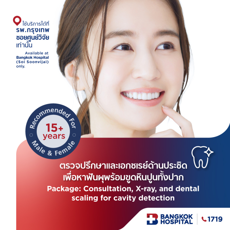 7.For further information or to schedule an appointment, please contact Dental Clinic, 2nd floor, Dental Building, Bangkok Hospital, every day from 09:00 AM to 08:00 PM or Contact Center at 02-755-1335 or 1719.