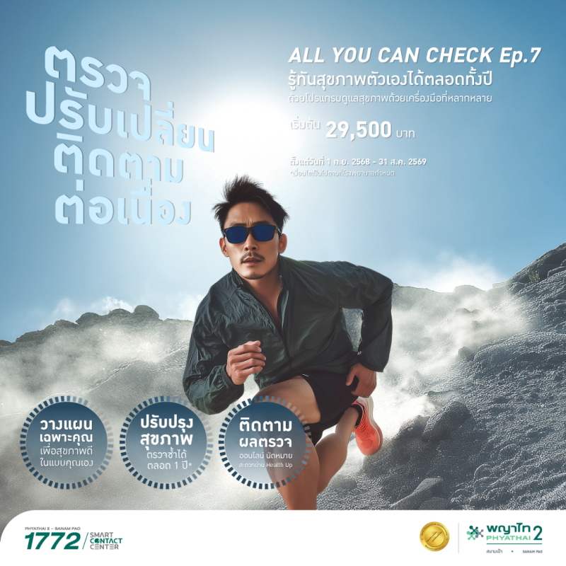 5. เพื่อความสะดวกสำหรับผู้รับบริการทุกครั้งก่อนเข้ารับการตรวจสุขภาพสามารถนัดหมายล่วงหน้า ที่ Phyathai Call Center 1772 ตลอด 24 ชั่วโมง