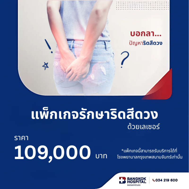 ราคา 109,000 บาท แพ็กเกจรักษาริดสีดวง (ด้วยเลเซอร์)