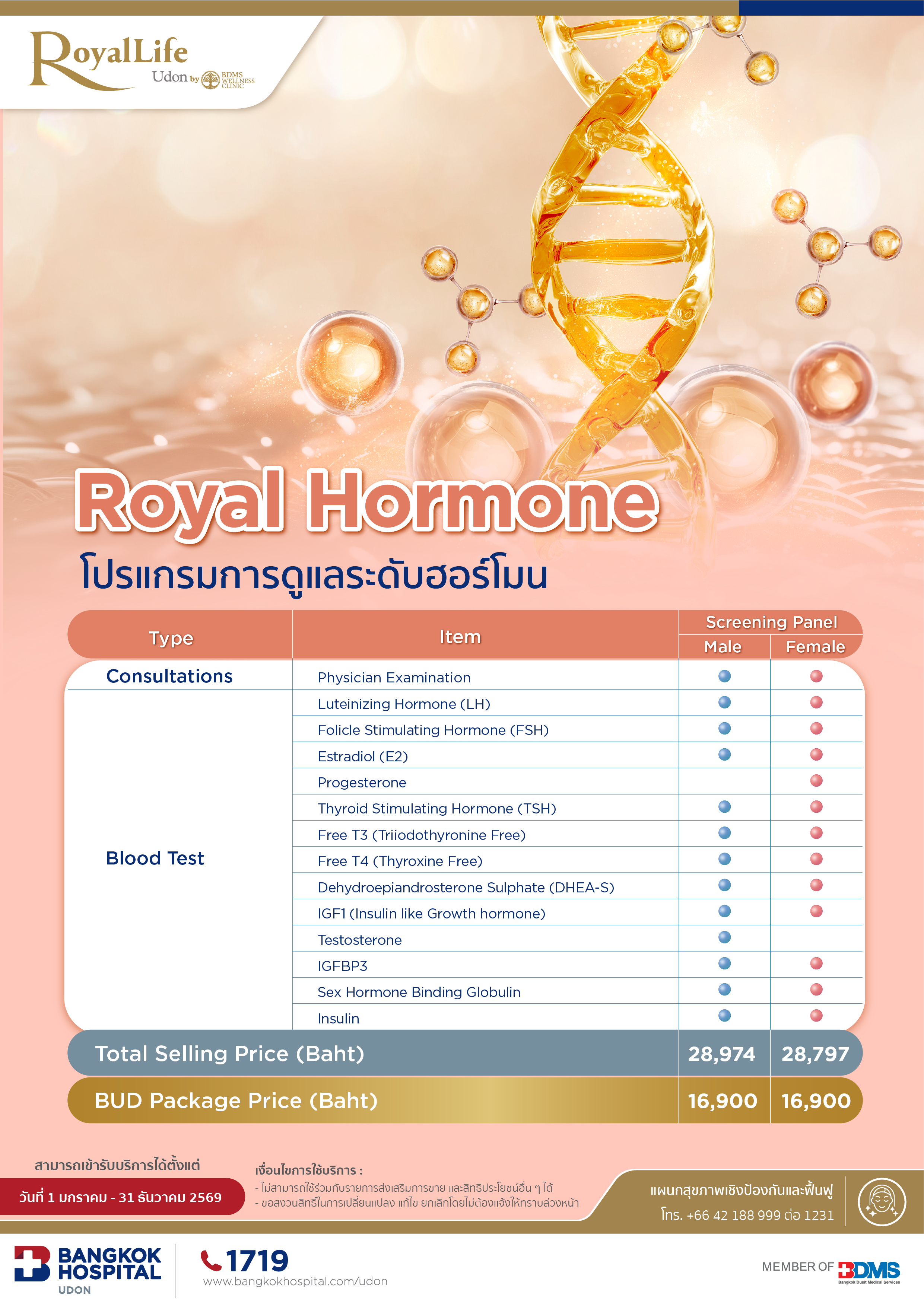 • ชุดตรวจสุขภาพไม่รวมค่ารักษา หรือค่ายาเพิ่มเติมในกรณีที่แพทย์สั่งเพิ่ม