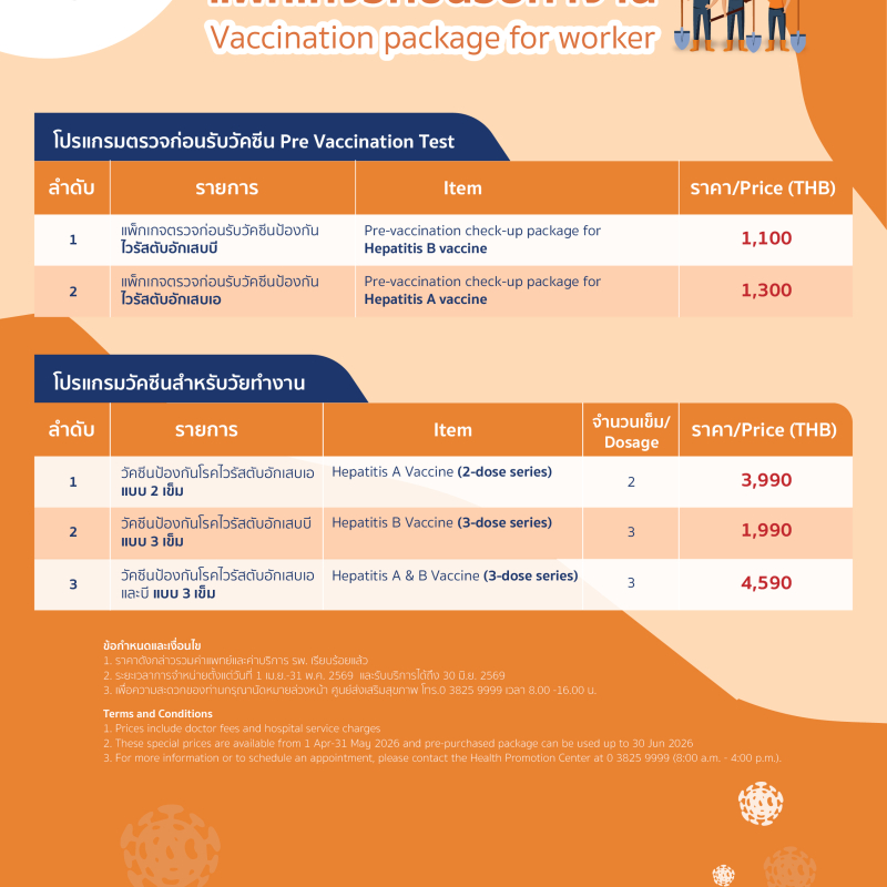 (โรงพยาบาลกรุงเทพพัทยา) วัคซีนป้องกันโรคไวรัสตับอักเสบเอและบี แบบ 3 เข็ม