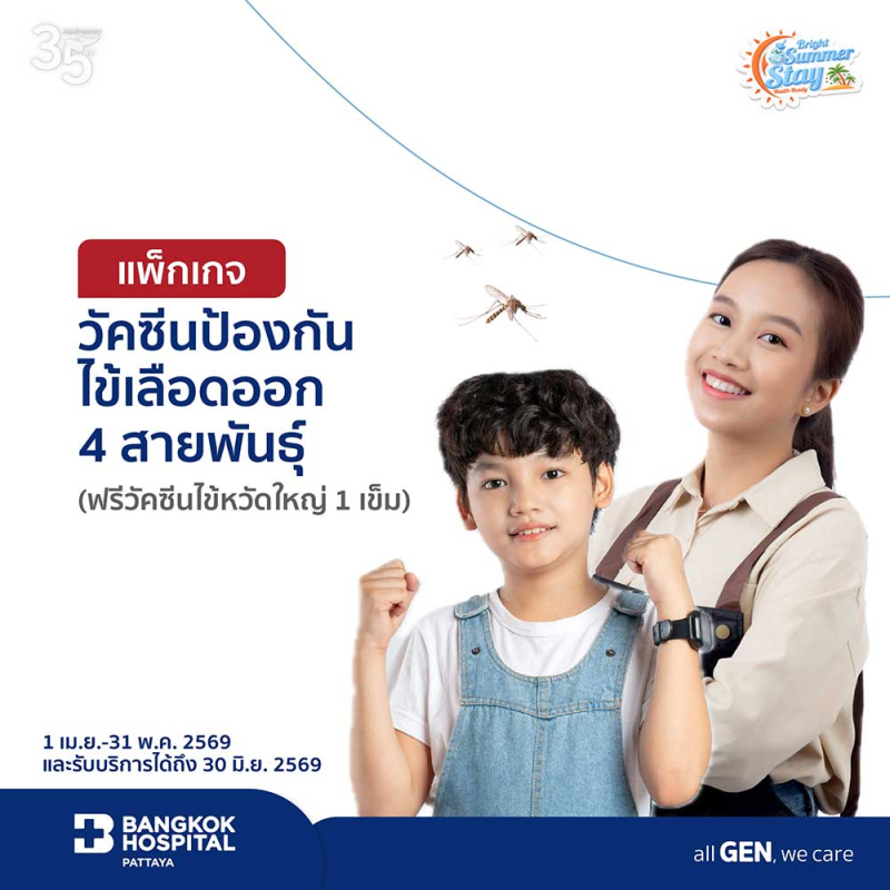 (โรงพยาบาลกรุงเทพพัทยา) วัคซีนป้องกันไข้เลือดออก 4 สายพันธุ์ ฟรีวัคซีนไข้หวัดใหญ่ 1 เข็ม