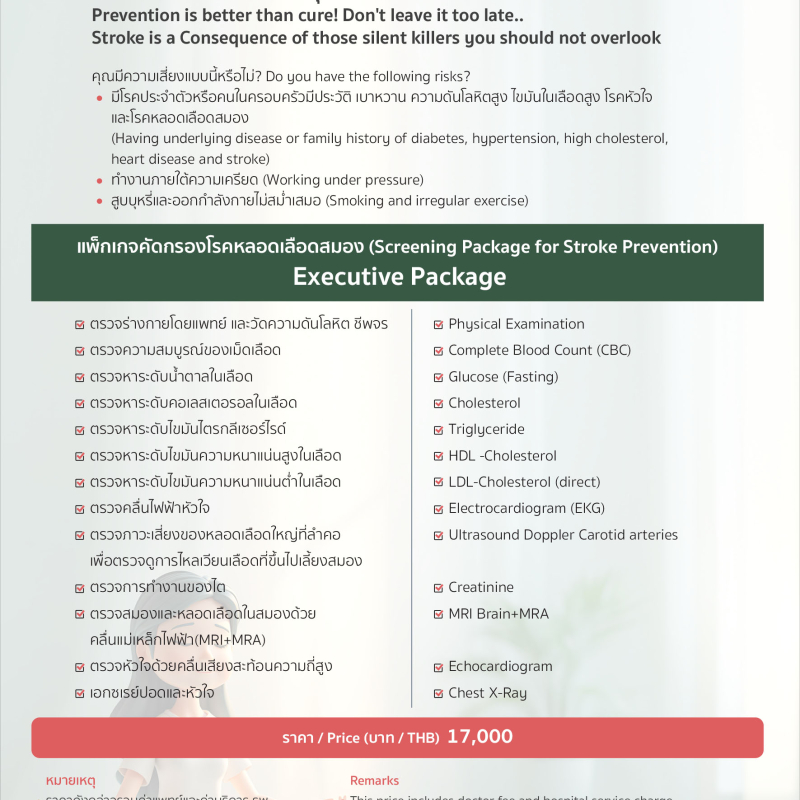 (โรงพยาบาลกรุงเทพพัทยา) แพ็กเกจคัดกรองโรคหลอดเลือดสมอง