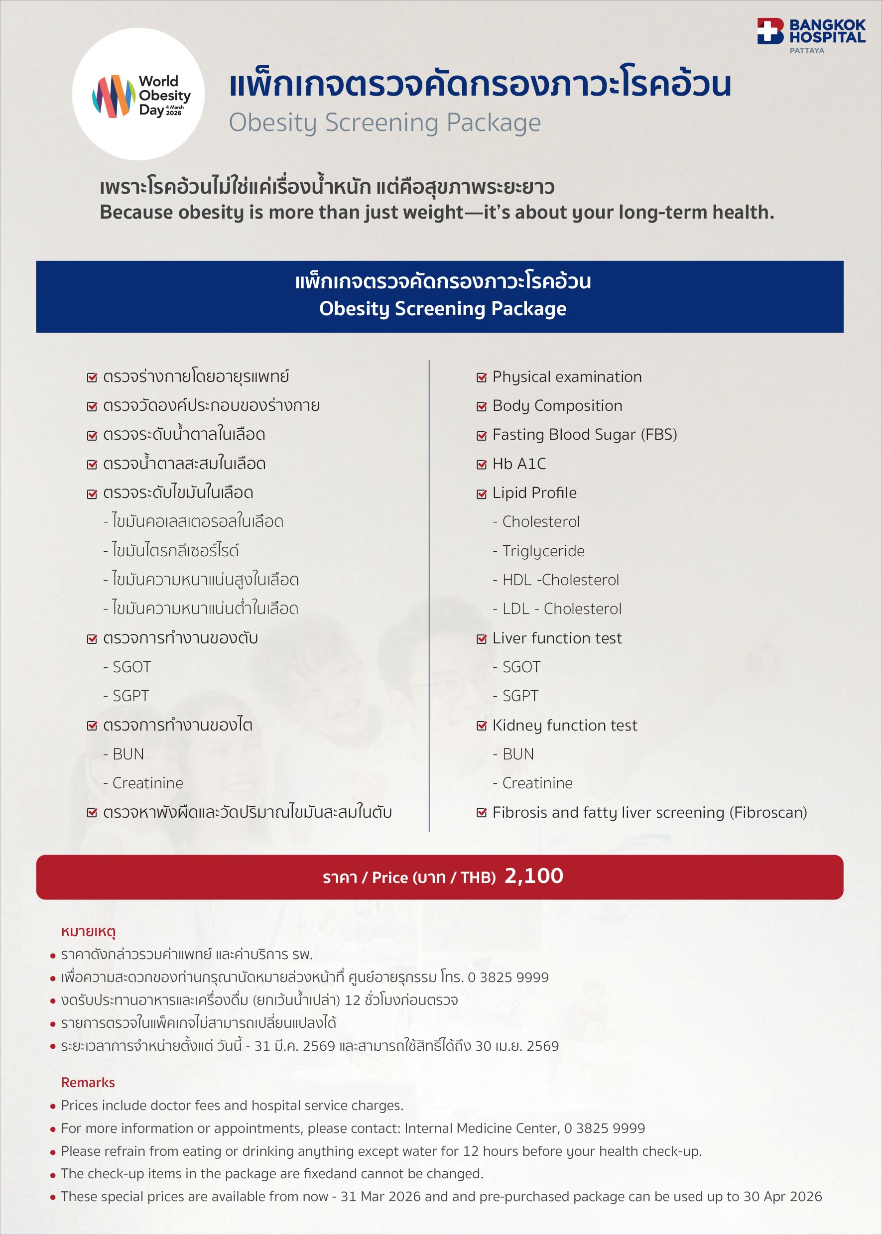 (โรงพยาบาลกรุงเทพพัทยา)แพ็กเกจตรวจคัดกรองภาวะโรคอ้วน