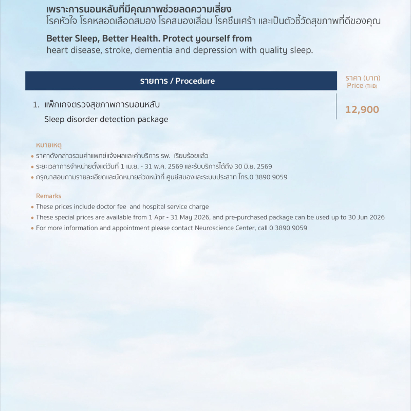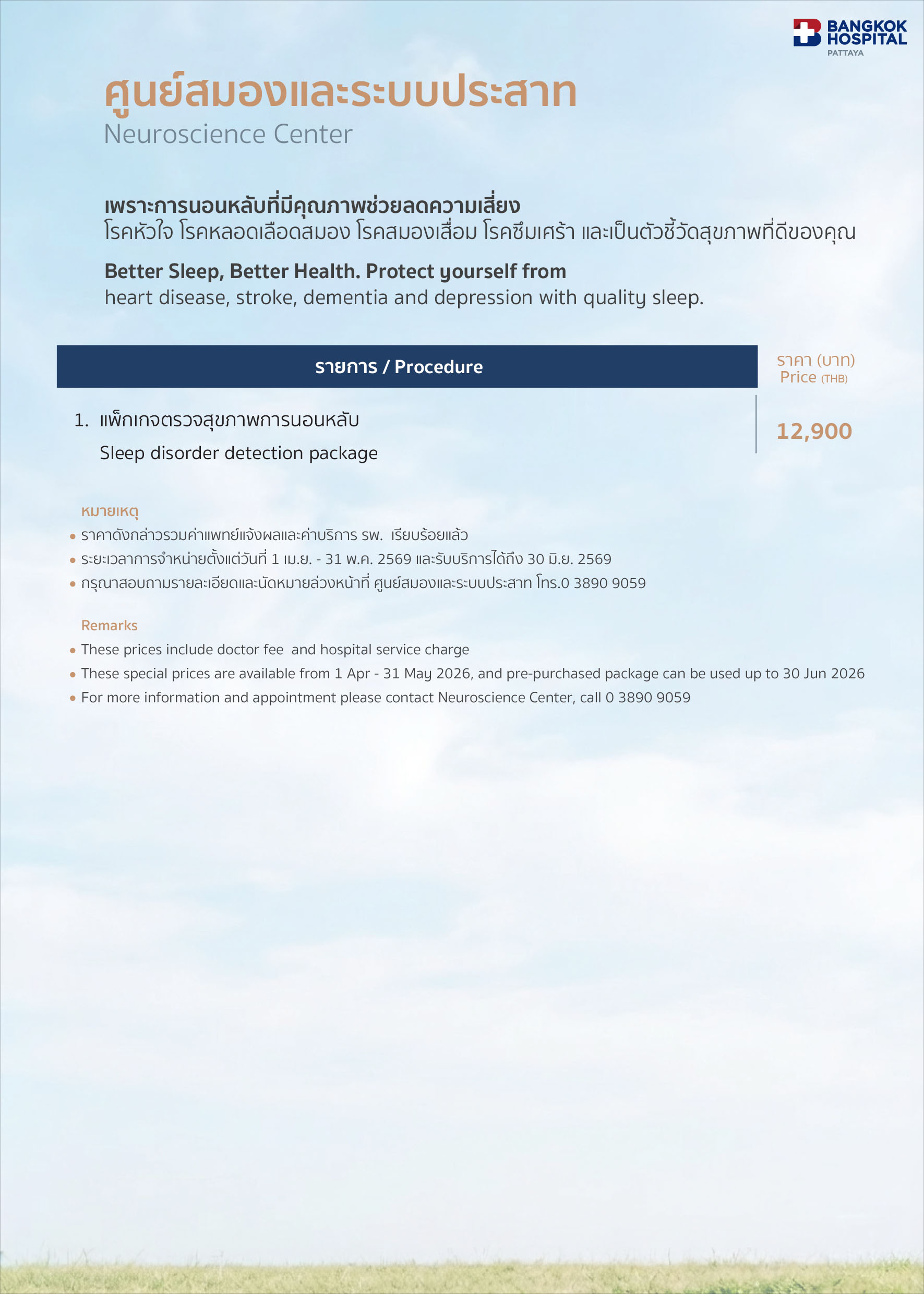 (โรงพยาบาลกรุงเทพพัทยา) แพ็กเกจตรวจสุขภาพการนอนหลับ