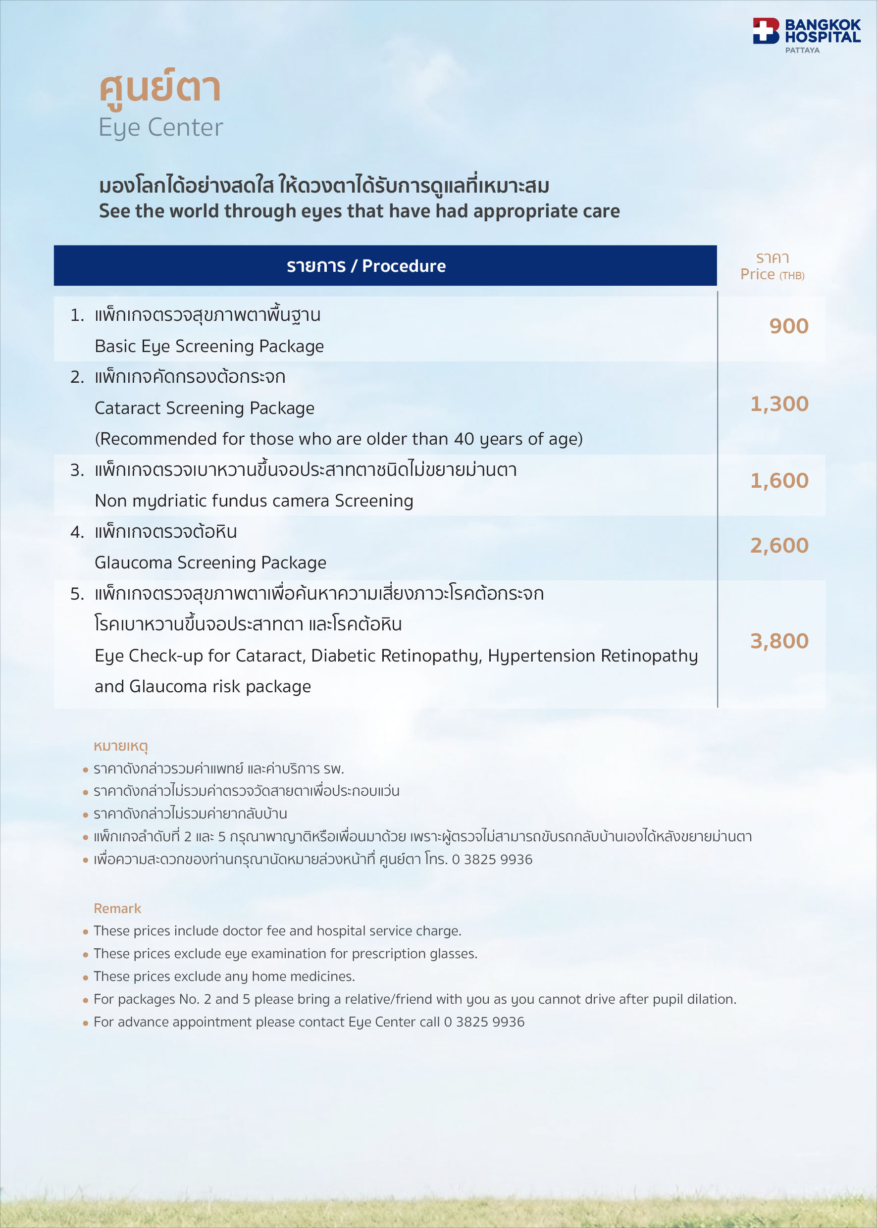 (โรงพยาบาลกรุงเทพพัทยา )แพ็กเกจตรวจสุขภาพตาพื้นฐาน