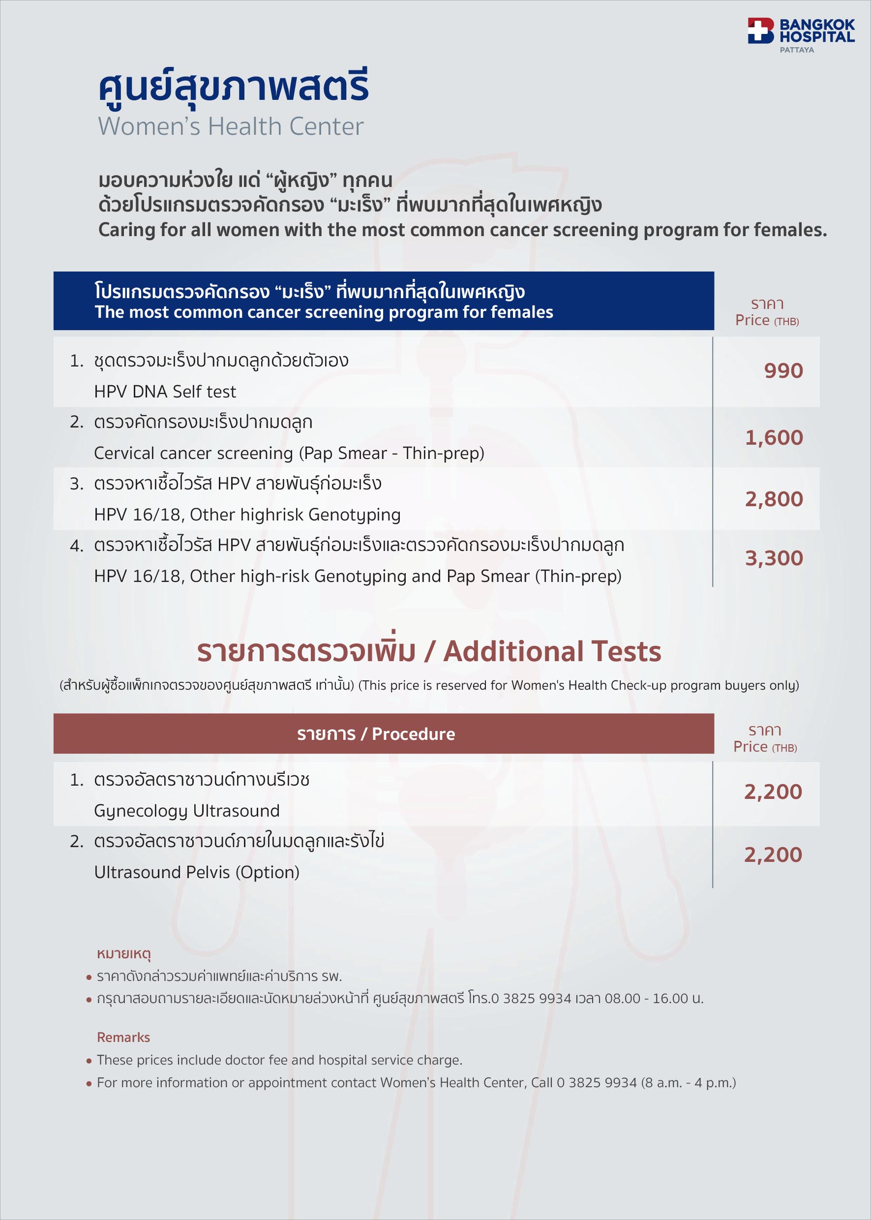 (โรงพยาบาลกรุงเทพพัทยา) โปรแกรมตรวจคัดกรองมะเร็งปากมดลูก