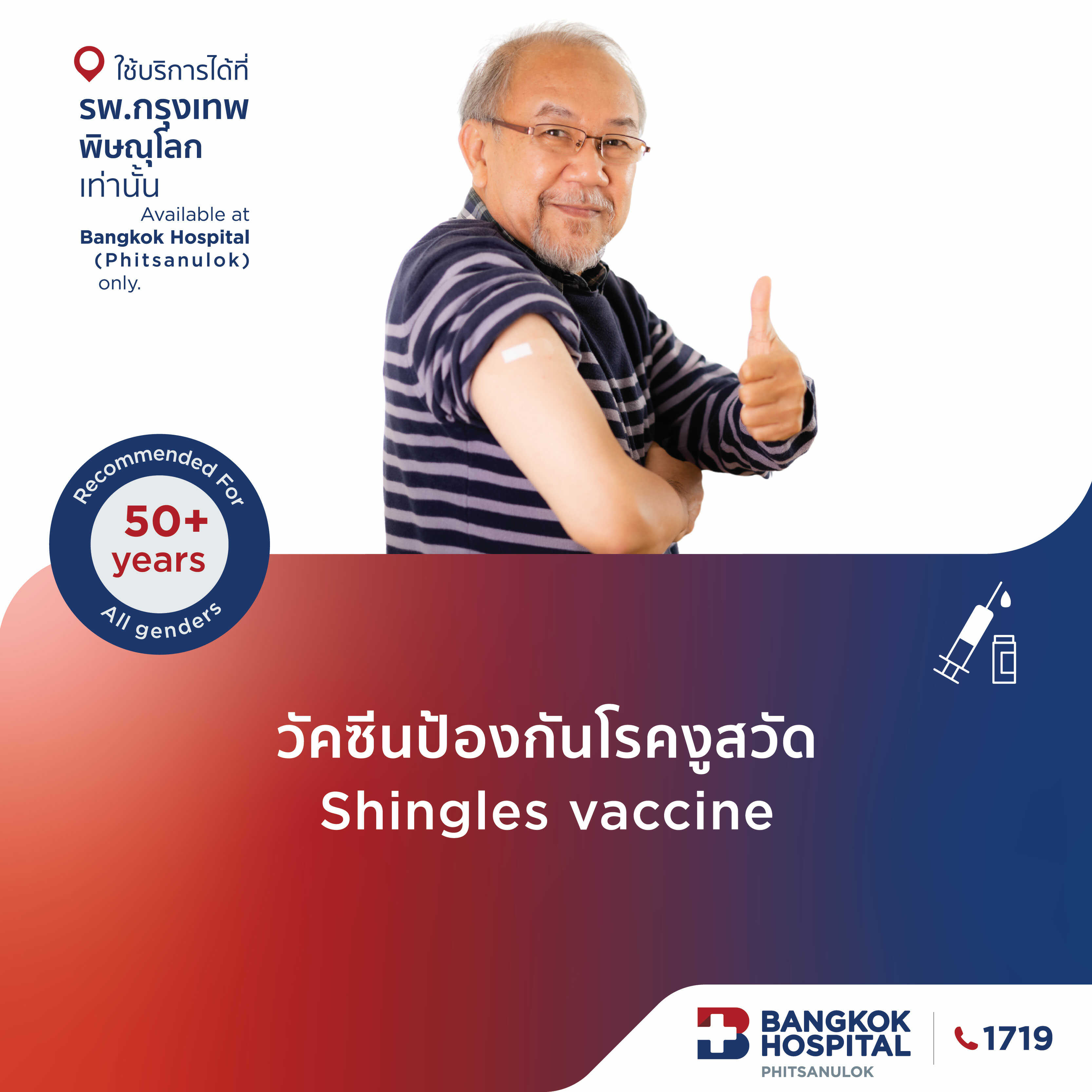 (โรงพยาบาลกรุงเทพพิษณุโลก) วัคซีนป้องกันงูสวัด (2 เข็ม)