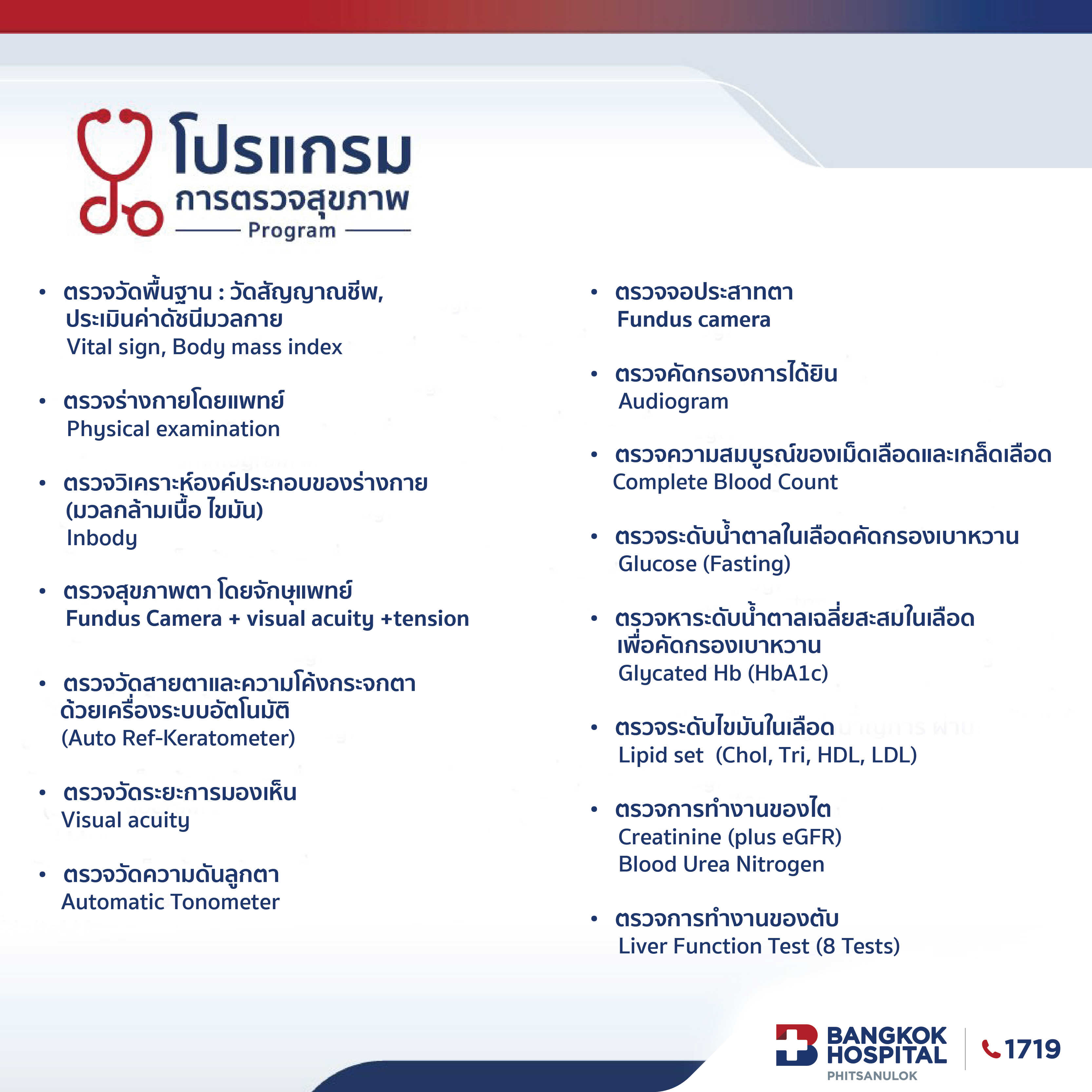 | 6. ชุดตรวจสุขภาพ ไม่รวม ค่ารักษาหรือค่ายาเพิ่มเติมในกรณีที่แพทย์สั่ง |