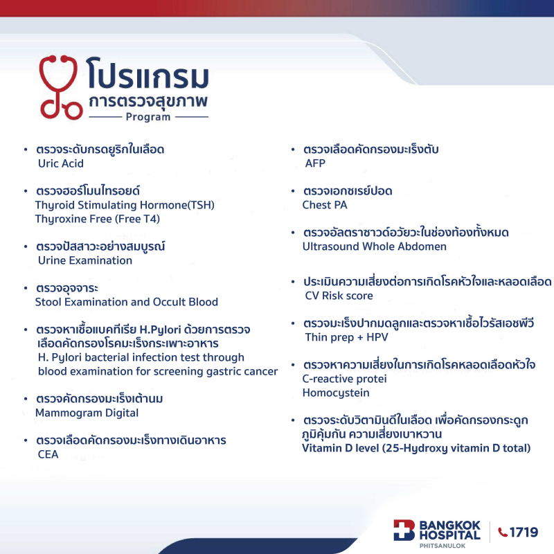 (โรงพยาบาลกรุงเทพพิษณุโลก)โปรแกรมตรวจสุขภาพ Supreme Female (อายุ 40-60 ปี)