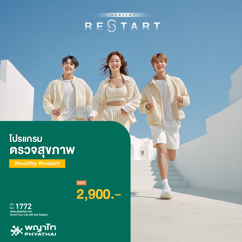 Healthy Restart สุขภาพของคุณ อัปเดตได้เหมือนอัปสตอรี่ ทุกช่วงเวลาคือโอกาสในการเริ่มต้นใหม่ โปรแกรม Healthy Restart ถูกออกแบบมาเพื่อให้คุณได้เช็กสุขภาพอย่างลึกซึ้ง รู้เท่าทันความเปลี่ยนแปลงของร่างกาย และวางแผนการดูแลได้เหมาะกับจังหวะชีวิตของคุณอีกครั้ง เพราะสุขภาพที่ดี…คือเรื่องราวที่ควรอัปเดตอยู่เสมอ เพื่อให้ทุกวันเริ่มต้นได้อย่างมั่นใจ และเต็มไปด้วยพลังอีกครั้ง