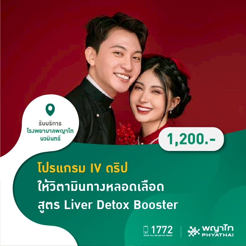 (โรงพยาบาลพญาไท นวมินทร์) LUCK & LOVE โปรแกรม IV ดริป ให้วิตามินทางหลอดเลือด สูตร Liver Detox Booster (1 ครั้ง) MKZ2637