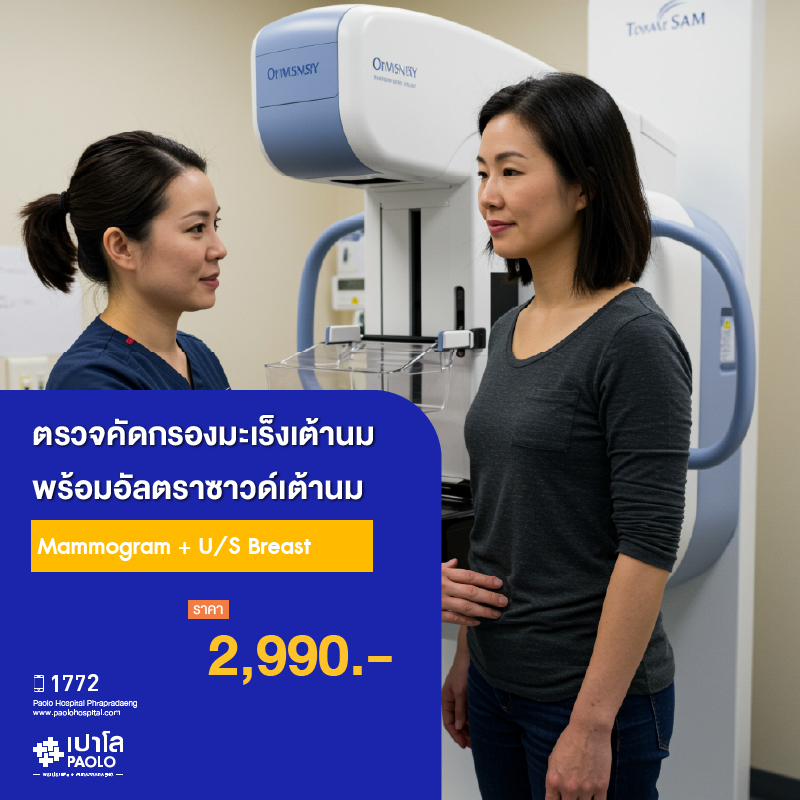 (โรงพยาบาลเปาโล พระประแดง) ตรวจคัดกรองมะเร็งเต้านม พร้อมอัลตราซาวด์เต้านม (Mammogram + U/S Breast) สำหรับผู้หญิงที่อายุ 35 ปีขึ้นไป