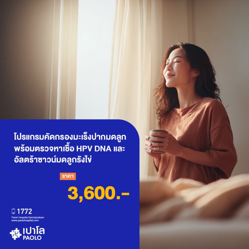 (โรงพยาบาลเปาโล สมุทรปราการ) โปรแกรมคัดกรองมะเร็งปากมดลูกพร้อมตรวจหาเชื้อ HPV DNA และ อัลตร้าซาวน์มดลูกรังไข่ MK2091I