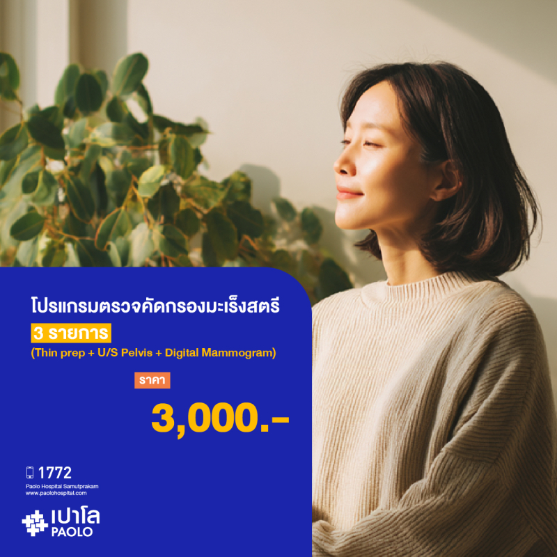 (โรงพยาบาลเปาโล สมุทรปราการ) โปรแกรมตรวจคัดกรองมะเร็งสตรี 3 รายการ (Thin prep+U/S Pelvis+Digital Mammogram) MK3143I