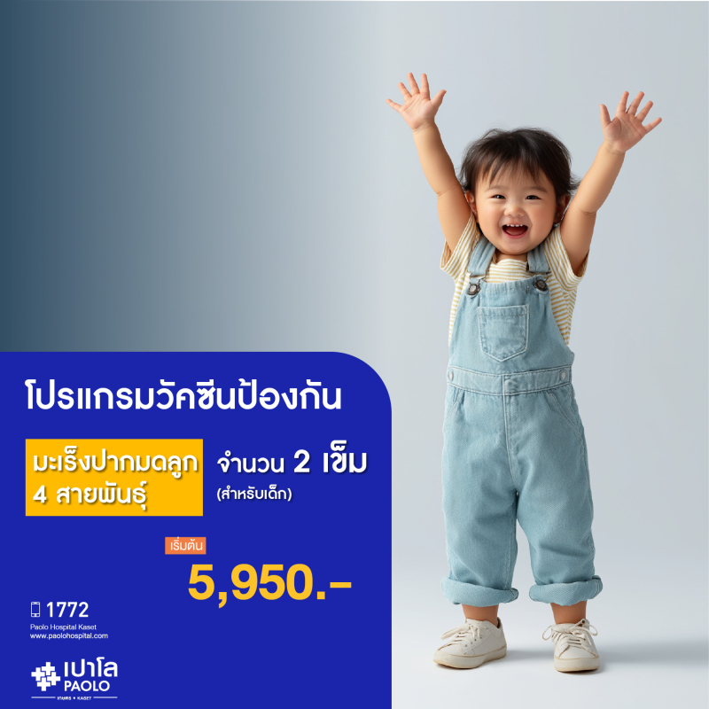 (โรงพยาบาลเปาโล เกษตร) วัคซีนป้องกันมะเร็งปากมดลูก 4 สายพันธุ์ 2 เข็ม สำหรับเด็ก MS2484P26
