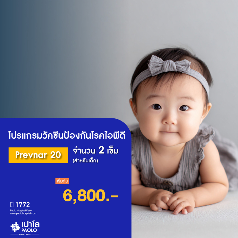 (โรงพยาบาลเปาโล เกษตร) วัคซีนป้องกันโรคไอพีดี Prevnar 20 จำนวน 2 เข็ม สำหรับเด็ก MS2478P26