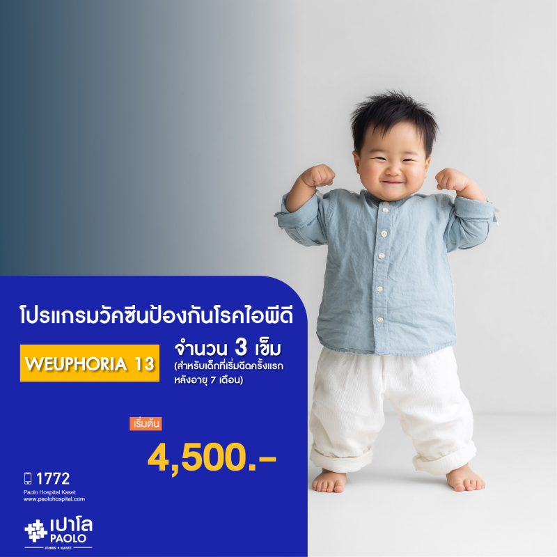 (โรงพยาบาลเปาโล เกษตร) วัคซีนป้องกันโรคไอพีดี WEUPHORIA 13 จำนวน 3 เข็ม สำหรับเด็กที่เริ่มฉีดครั้งแรก หลังอายุ 7 เดือน MS2475P26