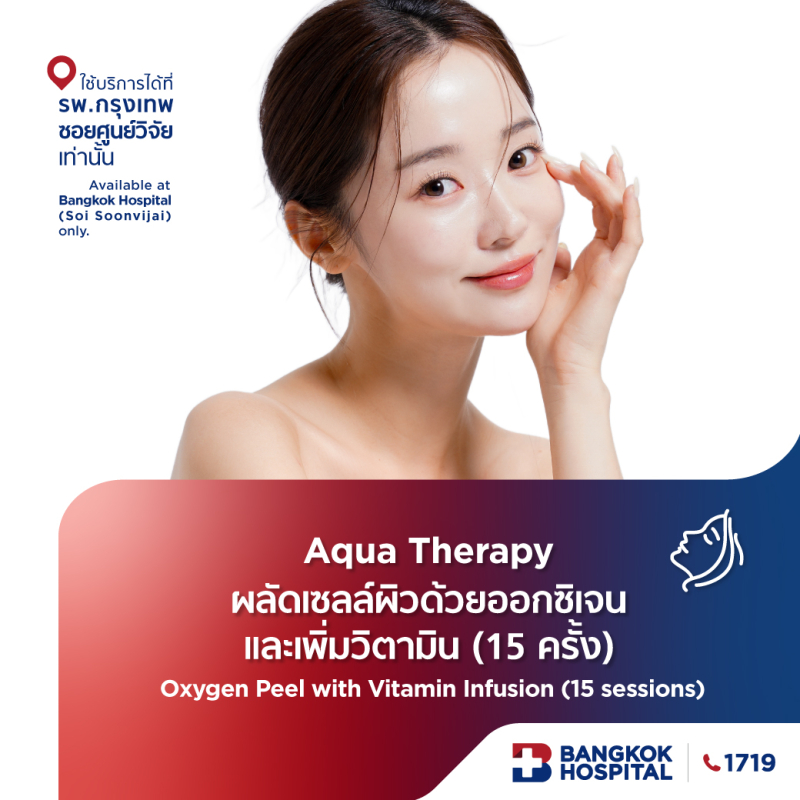 Aqua Therapy ผลัดเซลล์ผิวด้วยออกซิเจนและเพิ่มวิตามิน 15 ครั้ง Oxygen Peel with Vitamin Infusion 15 sessions - Bangkok Hospital Headquarters [E-Coupon]