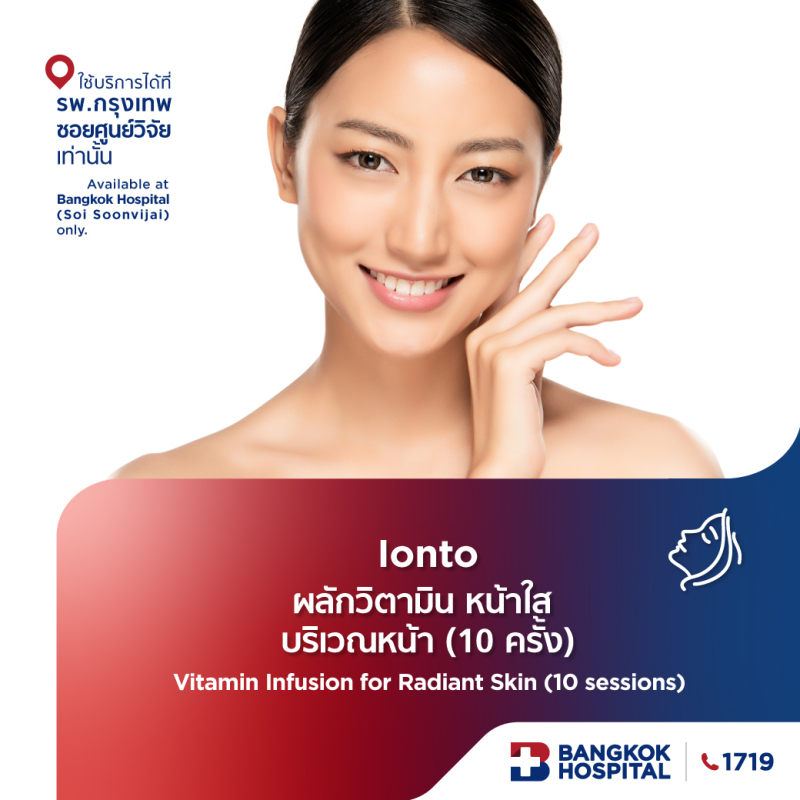 Ionto ผลักวิตามิน หน้าใส บริเวณหน้า 10 ครั้ง Vitamin Infusion for Radiant Skin 10 sessions - Bangkok Hospital Headquarters [E-Coupon]
