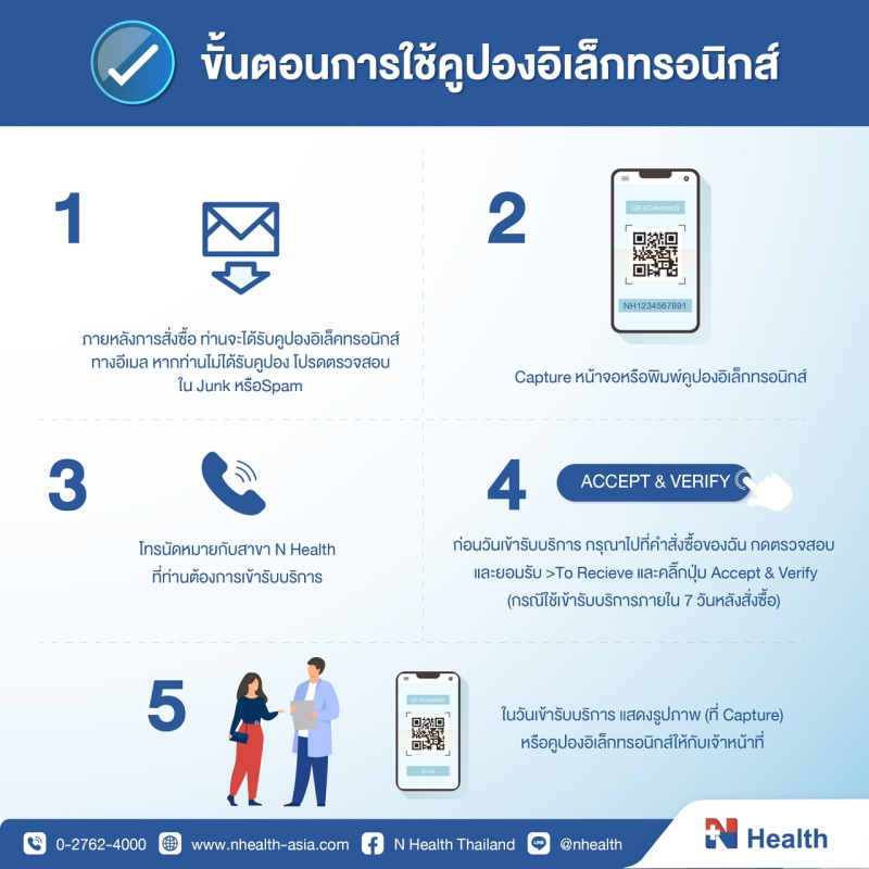 · สอบถามรายละเอียดเพิ่มเติมได้ที่ N Health Customer service 02-7624000 กด1 หรือ กด9