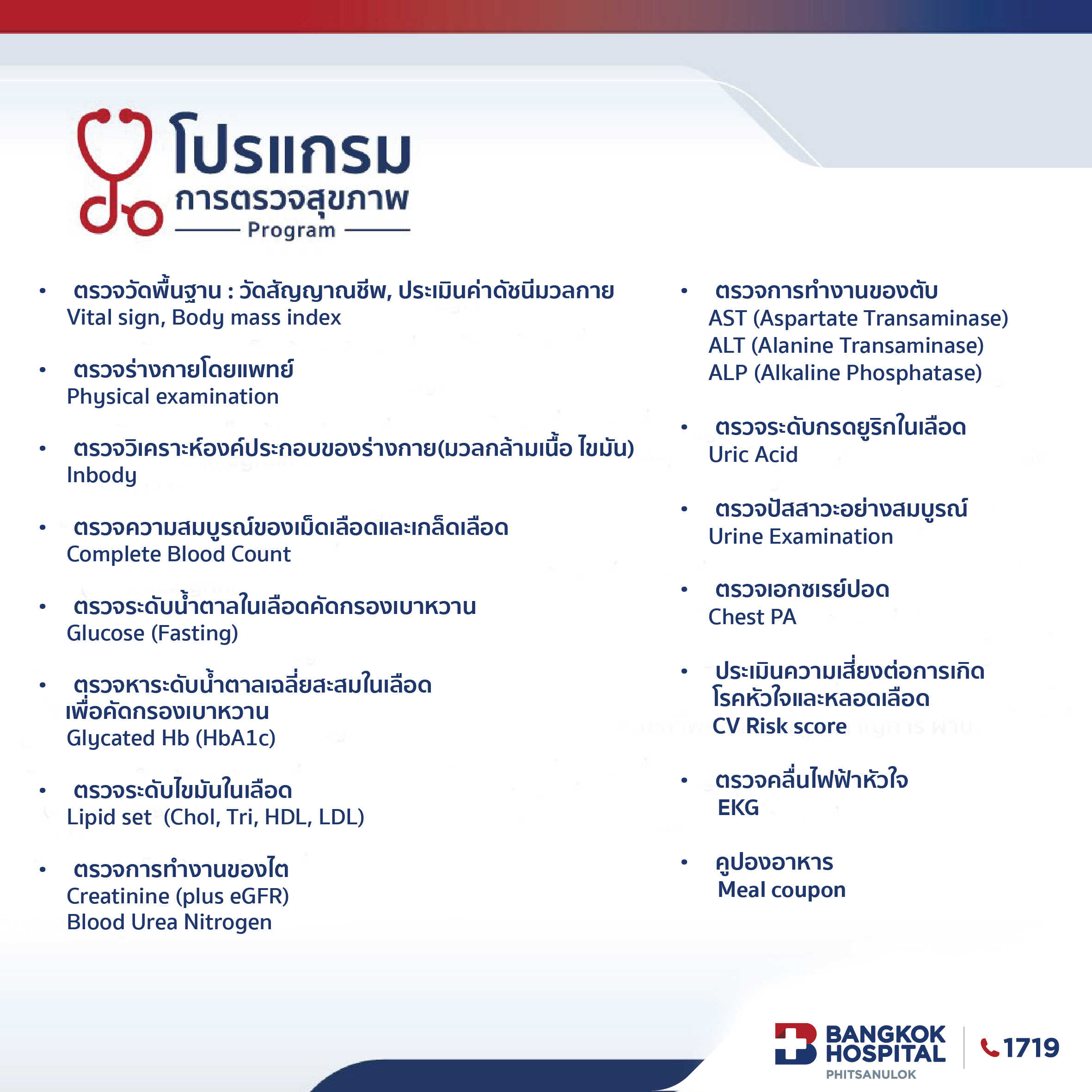 (โรงพยาบาลกรุงเทพพิษณุโลก) โปรแกรมตรวจสุขภาพ Gold Male & Female (อายุน้อยกว่า 30 ปี)